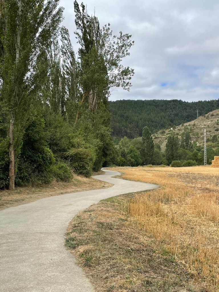 Esa es la sensación de la primera parte de la jornada de hoy. Es cierto que se pasa poco después de dejar Zubiri por una zona industrial única en el recorrido, pero luego los primeros kilómetros se parecen al encuentro con alguien conocido: pastos, senderos, pequeños bosques, rebaños de ovejas que me recuerdan que estoy durmiendo poco, como si el camino velara por mí e intentara garantizar mi descanso.
