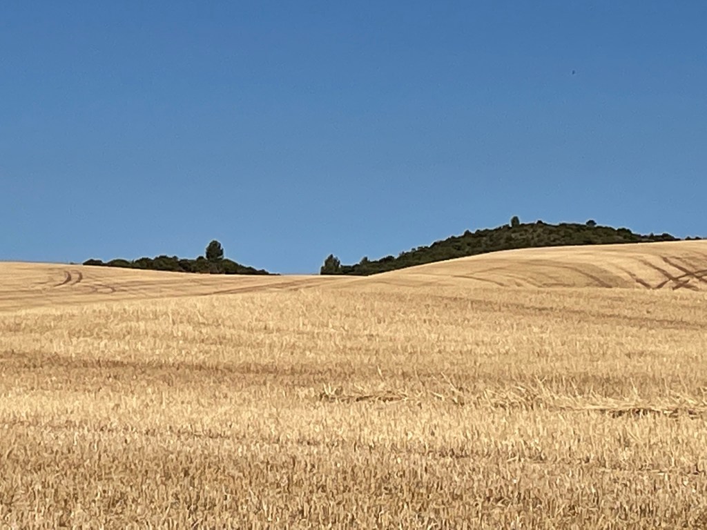 Antes de dejarnos escapar, le da tiempo a quejarse de los últimos incendios, cuya huella se aprecia en las lomas ennegrecidas que se notan hacia el oeste. Y cuando el fuego llega al cereal, ¡buuuuuuuuu! Y mueve los brazos de golpe hacia la derecha con velocidad para simular la propagación incontrolable de las llamas. Un desastre -concluye.