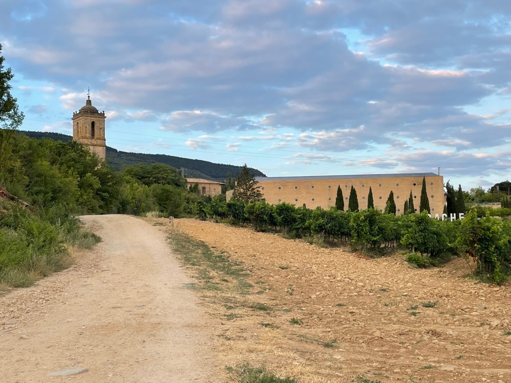 El tramo hasta Los Arcos es largo y monótono, pero cuando ya han pasado tres de los nueve totales, nos sorprende un food truck de dos irlandeses que ofrecen bebidas y comida a un precio razonable. Sirve ese oasis de felicidad colocado estratégicamente a la sombra de unos pinos para reencontrarse con algunas caras conocidas, además de para hidratarse debidamente y comer algo ligero (un buenísimo gazpacho entre otras cosas), y para saber que alguno de los peregrinos piensa acabar la jornada en Los Arcos. En ese momento nos parece una sabia decisión, pero a la larga tal vez no compense, pues de ese modo se tendrán que afrontar dos etapas difíciles una detrás de otra: la de Logroño al día siguiente de 29 kilómetros y la de Nájera de casi 30. Nos convencemos, pues, de que adelantar la penitencia podrá ser beneficioso.
