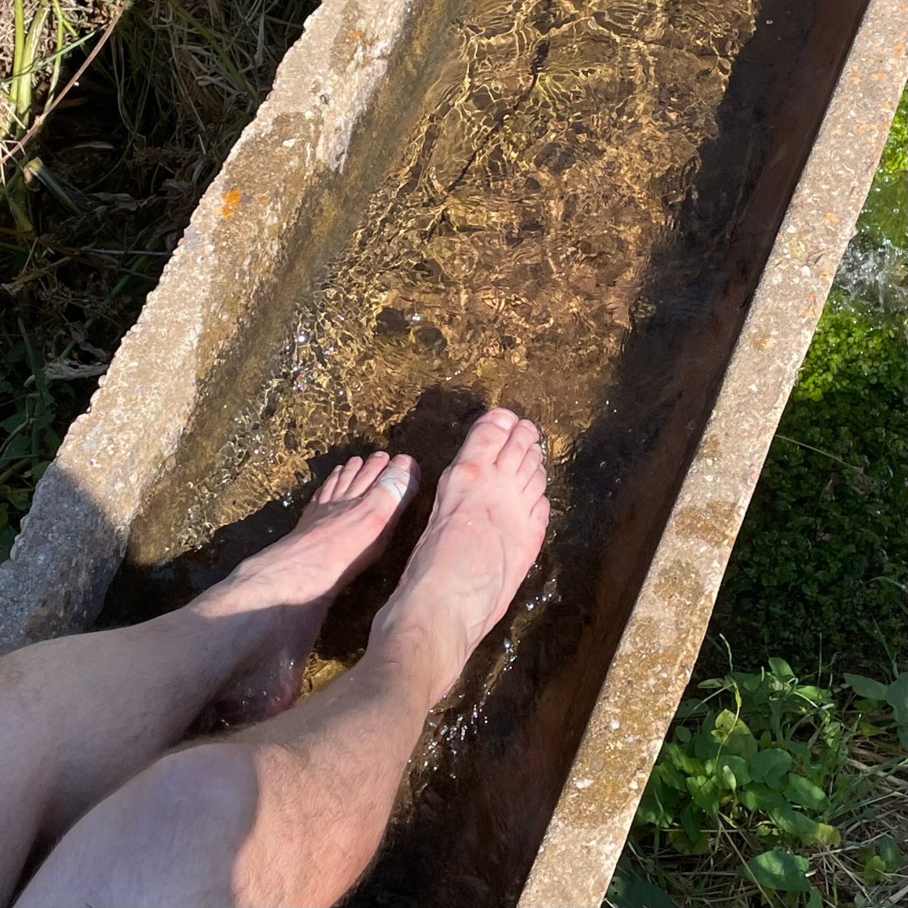 Una acequia salvadora para los pies / Un canale di irrigazione, manna per i piedi.