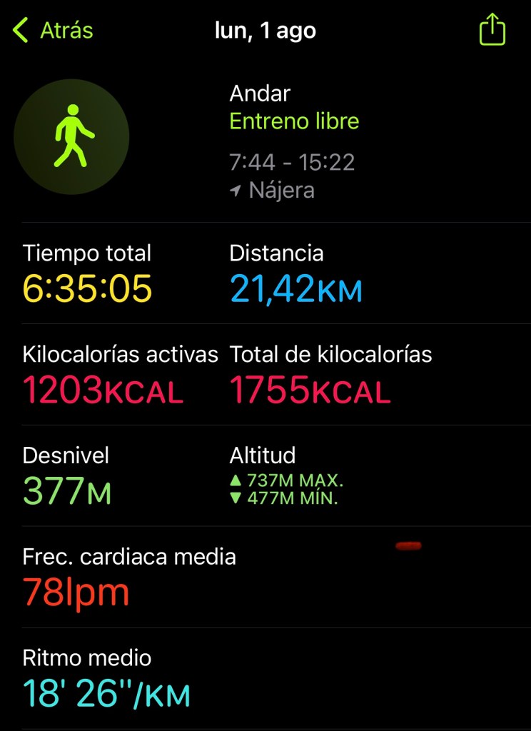 Da Azofra in poi, il paesaggio perde pian piano le viti e guadagna i cereali. Il sole esce del tutto più o meno alle dieci, il caldo sale e mette alla prova i camminatori. Il ritmo dello scudiero diminuisce e il cavaliere vi si deve adattare. Si ferma e lo aspetta mentre lui fa un grande sforzo per andare avanti. Anche se il cavaliere a volte sbuffa e gli pesa un po’ il dovere di fermarsi e di allungare la durata della sua giornata, è consapevole del fatto che sul Cammino, come nella vita, è impossibile camminare sempre al proprio ritmo. I giorni e i sentieri impongono le loro leggi. A volte bisogna accelerare più del normale per non perdere i treni, e altre volte è necessario aspettare con pazienza per fare un passo. L’alternativa è camminare sempre da soli, sprovvisto dalla compagnia e dalla conversazione. Così, dopo un istante di scomodità passeggera, adatta i suoi passi ai bisogni che l’occasione impone.