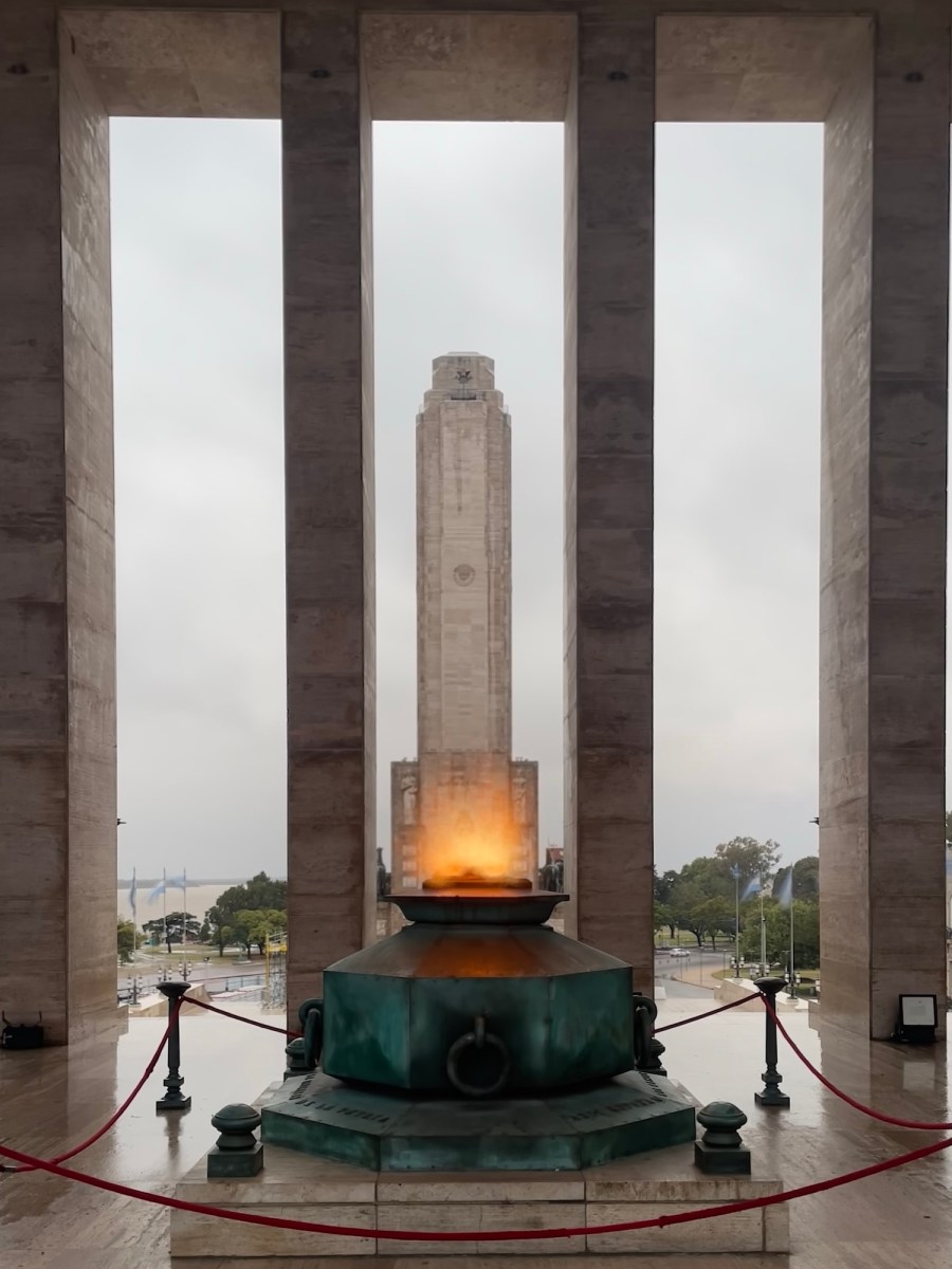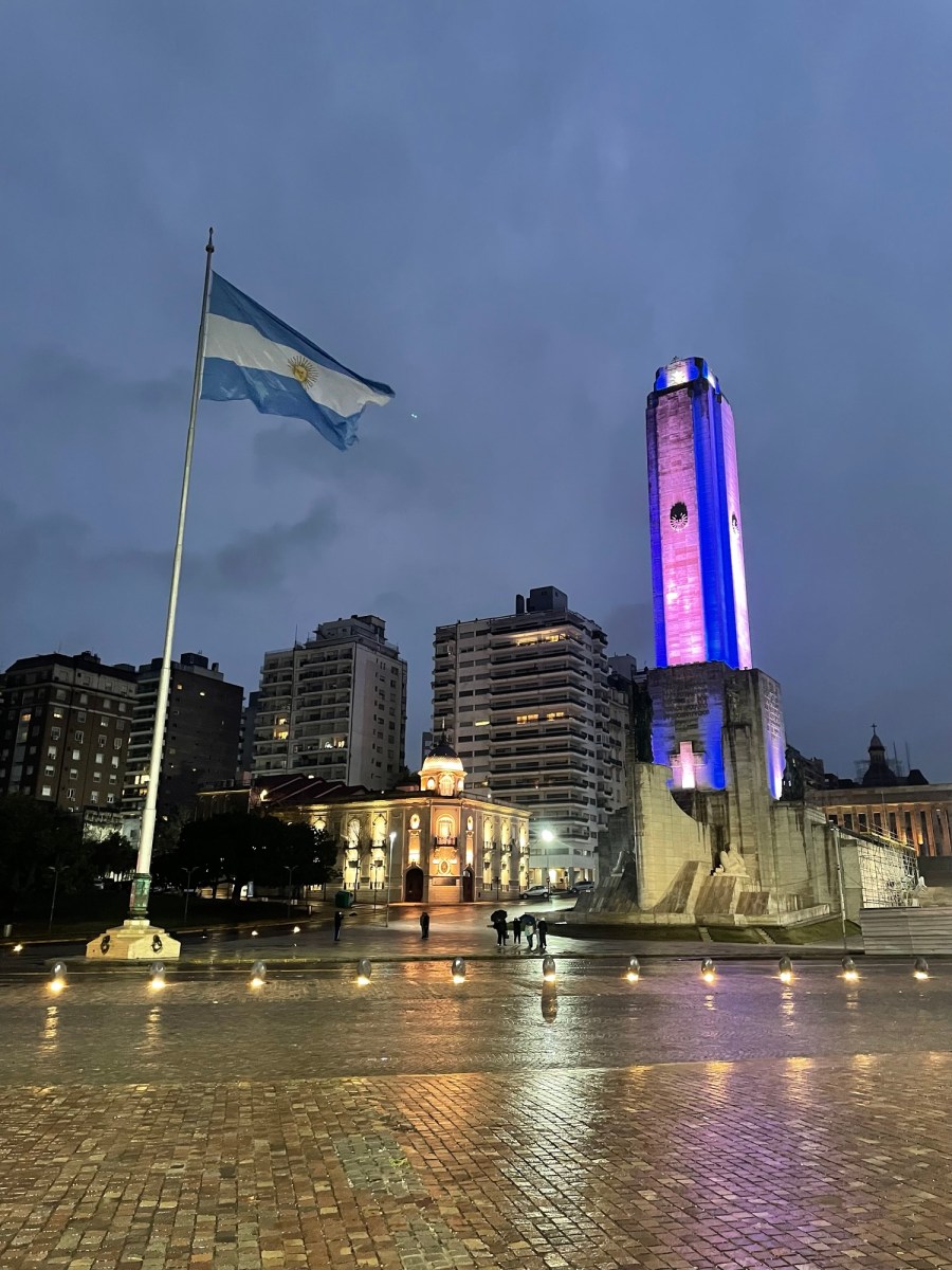 El monumento a la bandera y a su creador, Manuel Belgrano, mereció una sesión de fotos la primera noche, aunque hacía mucho frío. La iluminación le daba un aspecto liviano a pesar de la contundencia de la construcción, y los tonos albicelestes que se mezclaban con el más oscuro de la piedra creaban un juego de colores muy fotogénico. De modo que nos fue difícil contener el impulso y la batería del móvil sufrió las consecuencias.