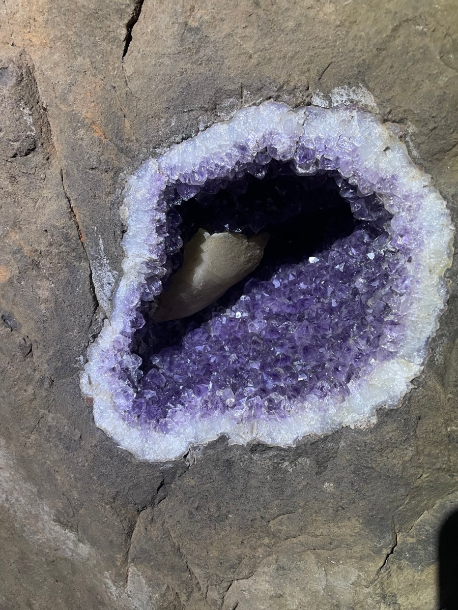 Se una pietra viene trovata in un punto dove estrarla metterebbe a rischio la stabilità della miniera, la si lascia al suo posto. La sua presenza, però, segnala che altre formazioni sono probabilmente vicine. Quando una di queste “bolle fossili” viene estratta, viene tagliata longitudinalmente: l’esterno del taglio è composto da quarzo e agata, mentre l’interno può essere di ametista —la più scura e pregiata è chiamata “ametista imperiale”. A seconda della qualità, queste pietre vengono poi impiegate per decorazioni o gioielli, montati in oro o argento.