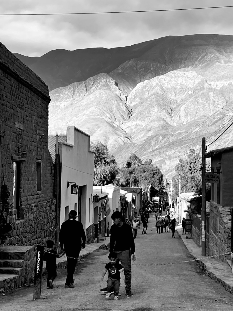 Già al primo sguardo, Purmamarca ci è sembrata pittoresca: il mercato dell’artigianato brulicava di turisti e i colli circostanti cambiavano aspetto man mano che il sole si spostava. La piazza centrale, con il cabildo e la chiesa di Santa Rosa de Lima, ha accolto i nostri primi scatti fotografici.