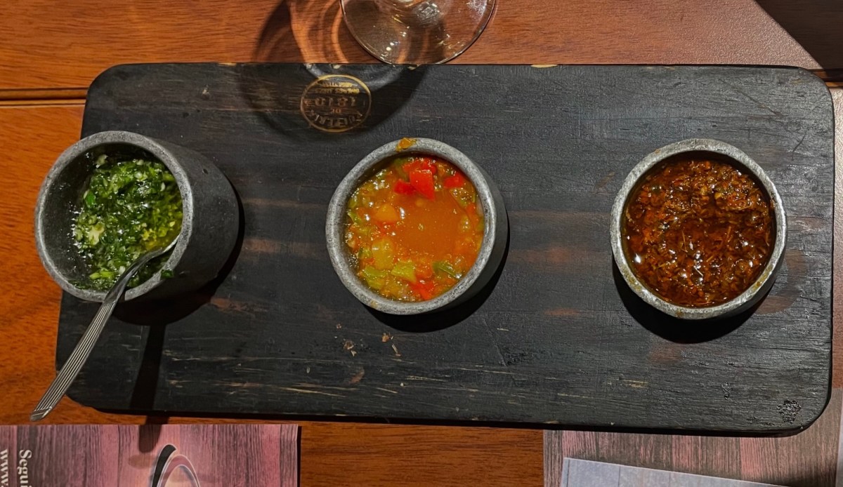 In giro per il Paese abbiamo assaggiato ojo de bife, bife de chorizo, matambre (che può essere cotto alla griglia oppure nella versione arrotolata, tipo “affettato”), e vacío, un altro taglio squisito che abbiamo provato al forno. Va detto che la carne arriva quasi sempre accompagnata da salse: la provenzal (olio d’oliva, aglio e prezzemolo), la criolla (una sorta di vinaigrette) e il celebre chimichurri (prezzemolo, origano, peperoncino macinato, olio, aceto e sale).