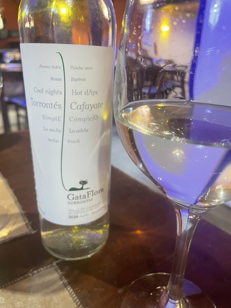 Sin salir del ámbito de los tintos, también hemos probado nuestro famoso Sikuri (vino de altura de la región de Jujuy, elaborado con Sirah) el Pinot noir y la Criolla grande que nos sirvieron en Mendoza. En cuanto a los blancos, tengo un buen recuerdo del Torrontés que bebimos en Purmamarca, abocado e intenso, que maridaba perfectamente con los platos propuestos. A mi modesto entender, recordaba un poco al moscatel seco de las Colinas Eugáneas (Fior d’arancio secco di Colli Euganei), aunque era más dulce en boca. Otros blancos, Chardonnay sobre todo y Sauvignon Blanc, me han dejado más indiferente. De gustibus…