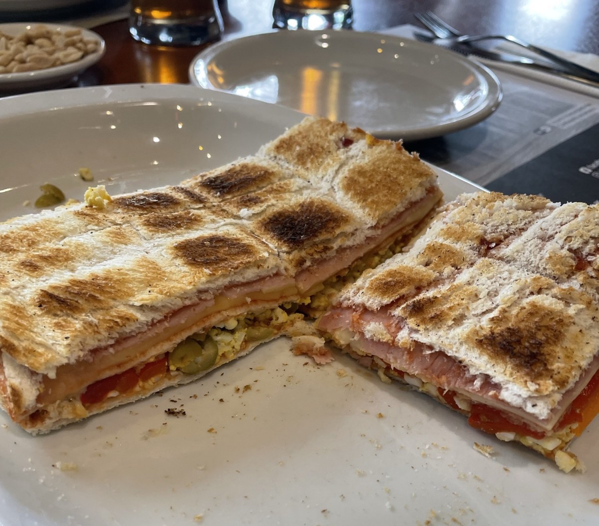 Otra posibilidad son los sánguches de miga, es decir, los hechos con pan de molde. Estos también pueden ser tostados a la plancha, como el famoso carlito de Rosario, que probamos en el café El Cairo de dicha ciudad. Tiene varias versiones más o menos sofisticadas, pero en cualquier caso está riquísimo.
