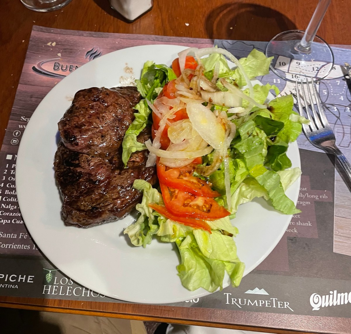 Gli ho dato una seconda possibilità a Mendoza e sono contento di averlo fatto. Stavolta nel piatto non c’era nessuna componente gommosa e mi è piaciuto molto. Quando ho raccontato al cameriere che la prima volta non mi era piaciuto, senza dargli altri dettagli, ha completato lui la storia: a volte lo “riempiono” con parti molli del bovino per far volume, ma quella versione non è di buona qualità.