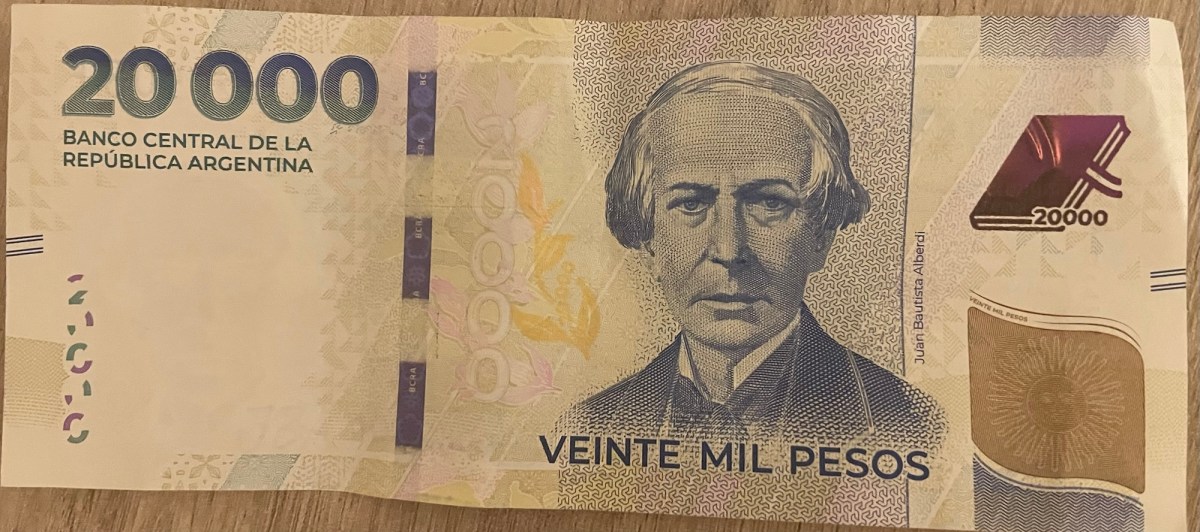In questi giorni, un peso argentino si scambia a circa 0,00065 euro. Per fare i conti, dividevo mentalmente l’importo per mille e poi calcolavo circa il 70%. Risultato: una banconota da 20.000 pesos vale sui tredici, quattordici euro.