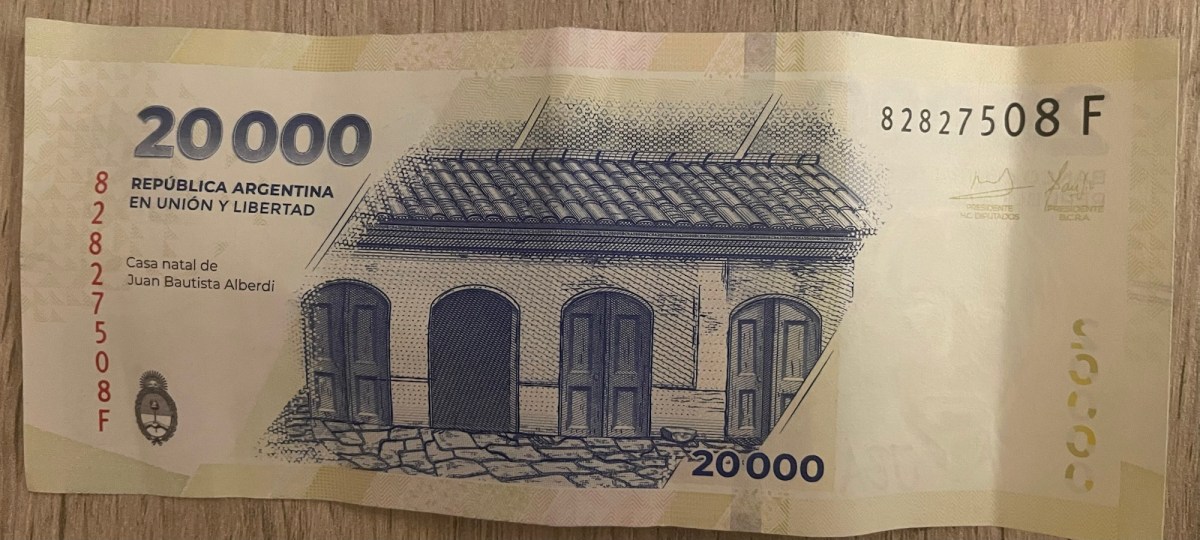 Il peso argentino vale poco, inutile girarci intorno, ma le sue banconote hanno un fascino tutto particolare. Forse non sono più belle di quelle di altre valute, ma per me hanno quel tocco di esotico che di solito attribuiamo alle cose poco conosciute. Sarà per questo che a volte mi confondevo: volevo pagare con una da 20.000 e finivo per consegnarne una da 2.000. Tra quell’infinità di zeri mi perdevo.