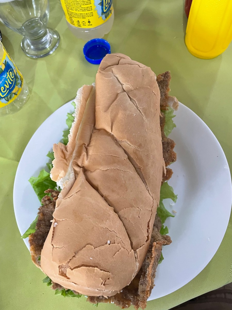 Dall’altro lato c’è anche l’universo dei panini, che lì chiamano di solito sandwich, o nella versione locale del termine, sánguche. Direi che qualunque pezzo di carne è candidato a finire tra due fette di pane, in genere molto morbido e facile da mordere, il che invoglia a mangiarlo con gusto. Noi l’abbiamo provato con milanesa (cotoletta) e con bondiola (una sorta di prosciutto crudo, molto saporito).