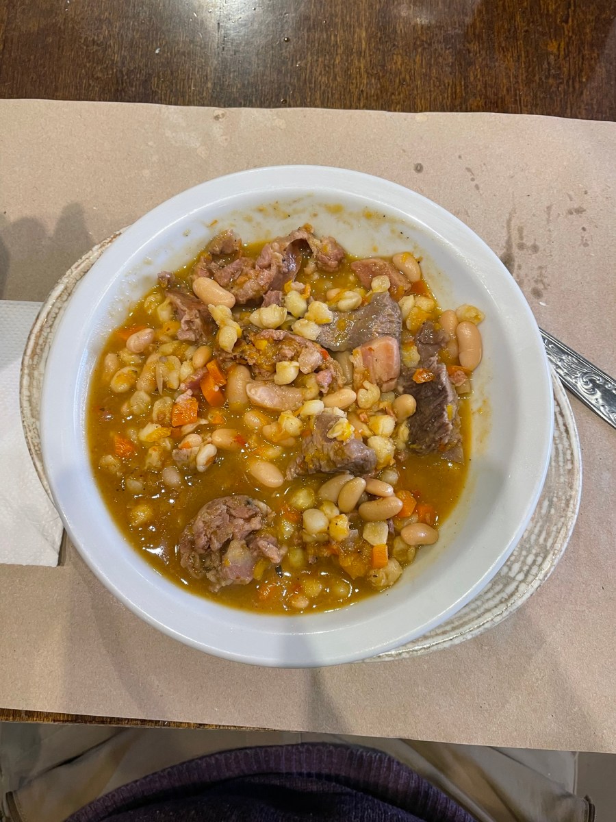 La gastronomia argentina offre anche ottimi piatti da cucchiaio, per scaldarsi lo stomaco negli inverni australi. Noi ne abbiamo provati due: il locro e uno stufato di lenticchie. Il primo non è altro che uno stufato di fagioli bianchi (porotos) con bocconi di maiale, mais e altre verdure. Me l’avevano consigliato prima di partire e ce l’avevo in mente, ma la prima esperienza è stata piuttosto negativa: l’ho ordinato in un ristorante di Buenos Aires, in una via pedonale molto turistica, e mi ha deluso. Ci avevano aggiunto delle strisce di trippa o cartilagine biancastra, senza sapore e del tutto immangiabili.