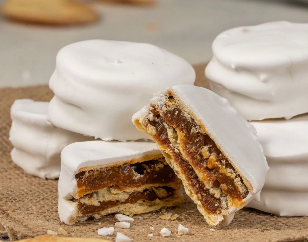 Un altro dolce che ci è capitato spesso a colazione sono le facturas: l’impasto è più consistente rispetto alle medialunas e di solito sono farcite, per esempio con crema pasticcera o con dulce de leche. Quest’ultima (in sostanza latte, zucchero e vaniglia) merita un capitolo a parte: sembra toccare l’orgoglio nazionale quanto la bandiera o la yerba mate. Ci sono perfino negozi dedicati solo a lei. A vederla pare stucchevole, ma, nelle dosi giuste, non lo è affatto. Si usa anche per farcire gli alfajores. Questi si presentano come due biscotti con in mezzo una farcitura dolce, poi ricoperti di cioccolato, glassa o qualunque cosa faccia impennare le calorie. E, come succede con molti altri dolci, anche gli alfajores hanno un’infinità di varianti, spesso legate alla provincia in cui vengono prodotti. Ne abbiamo mangiati alcuni al cioccolato e, a quanto pare, eravamo troppo impegnati a smaltire le calorie: ci siamo dimenticati di fare la foto. Qui sopra li abbiamo inseriti con immagini prese dal web.